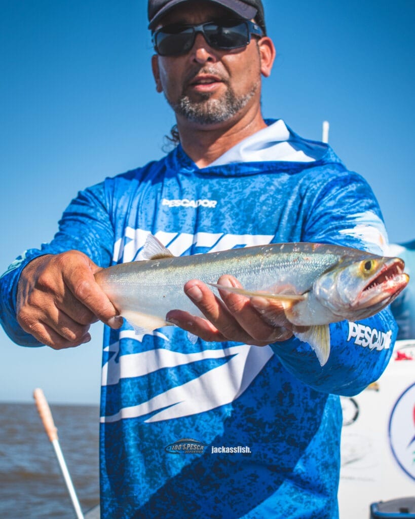 Pusimos rumbo a Berisso, ahí justo en el límite con ensenada en donde con una gran sonrisa se escuchaba el “Tinchooooooooo amigooooo”….. ahí estaba el carismpatico Nico Quinn. Guia en el Rio de la plata, en la zona de los malecones y alrededores. Entre risas, bromas, y traspaso de bolsos a la lancha. Íbamos esperando la llegada de Leo Corbiciero. Para mi… el mejor armador de líneas de pejerrey y uno de los pulsos mas finos al momento de pescar bogas.